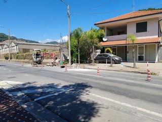 Per consentire, in totale sicurezza, i lavori su strada il traffico è momentaneamente veicolato con semaforo a senso unico alternato.