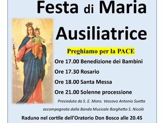 Il 24 maggio le parrocchie di Maria Ausiliatrice e di San Rocco, insieme all'intera comunità, festeggeranno la Madonna. "Si inizierà alle 17 con la benedizione dei bambini. Seguirà, alle 17.30, il rosario mentre alle 18 vi sarà la celebrazione della santa messa" - svela don Karim, parroco della parrocchia di Maria Ausiliatrice - "Alle 20.45, invece, ci si radunerà nel cortile dell'oratorio Don Bosco per la processione che partirà alle 21 e attraverserà le vie cittadine. Sarà presieduta dal vescovo della diocesi di Ventimiglia-Sanremo, Monsignor Antonio Suetta e sarà accompagnata dalla Banda Musicale di Borghetto San Nicolò-Città di Bordighera. Tutta la popolazione è invitata a partecipare addobbando il percorso che passerà lungo via Don Bosco, via Romana, via Roma, via C. Colombo per giungere, infine, al Belvedere dove vi sarà la benedizione e i fuochi d'artificio, dono dell'amministrazione".