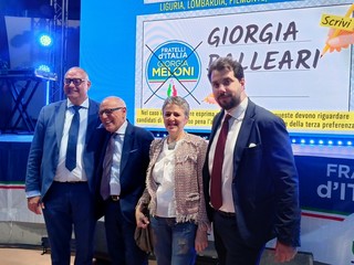 "Sono tornato a Vallecrosia perché qui ho una collega, Veronica Russo, che mi sta aiutando tantissimo in un'avventura straordinaria per portare un risultato altrettanto straordinario: un ligure in Europa. Fratelli d'Italia non ha mai avuto un ligure in Europa, è una sfida straordinaria per dare un risultato importante al nostro territorio che rappresenterò se verrò votato. In questa campagna elettorale ho modo di poter sentire, vivere e toccare con mano l'entusiasmo straordinario che tutti abbiamo per Giorgia Meloni. Con Giorgia l'Italia può cambiare l'Europa. Tutti dobbiamo ringraziare Giorgia Meloni perché senza la sua forza, la sua energia, la sua determinazione e la sua competenza noi non saremo nulla. Grazie a Giorgia abbiamo riacquisito una cosa importante: l'orgoglio di essere italiani" - fa sapere Stefano Balleari, capogruppo in Regione di FdI e candidato alle Europee, giunto in serata a Vallecrosia dove si è svolto l'apericena in musica per l'Europa organizzato dal circolo di Fratelli d'Italia della città della famiglia.