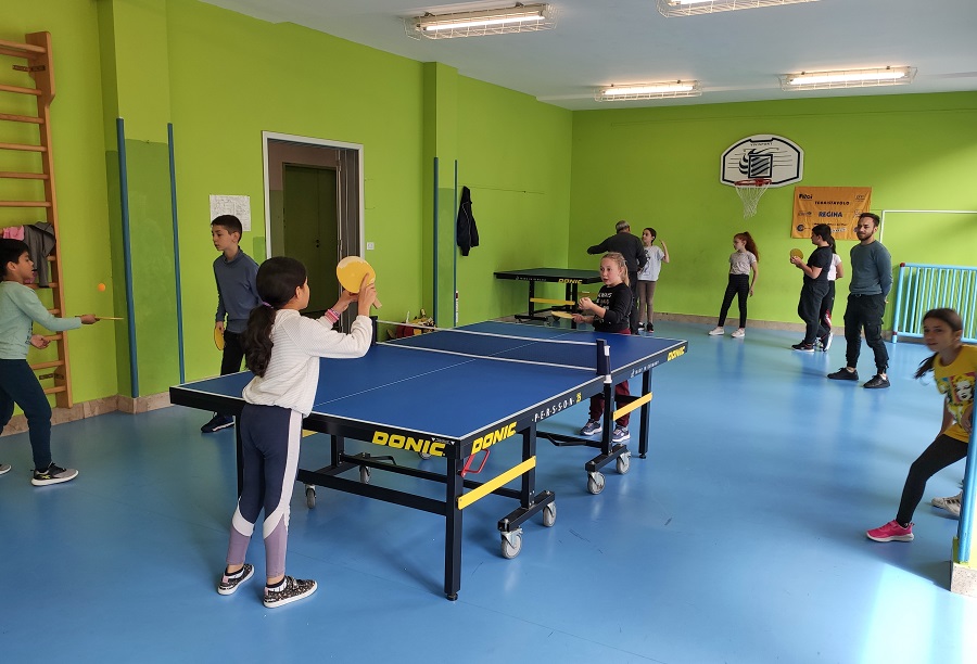 Il progetto ha visto tre/quattro incontri per ciascuna delle classi coinvolte con i ragazzi/e che sono stati seguiti dagli allenatori del ‘Regina Tennistavolo Academy’ all’interno delle scuole.