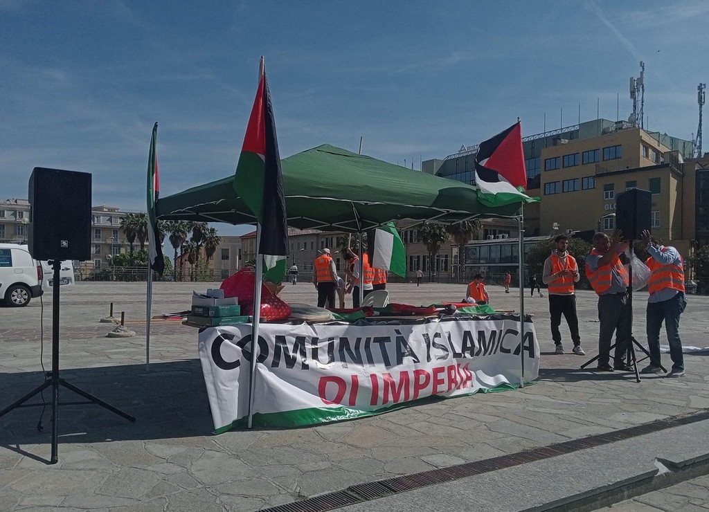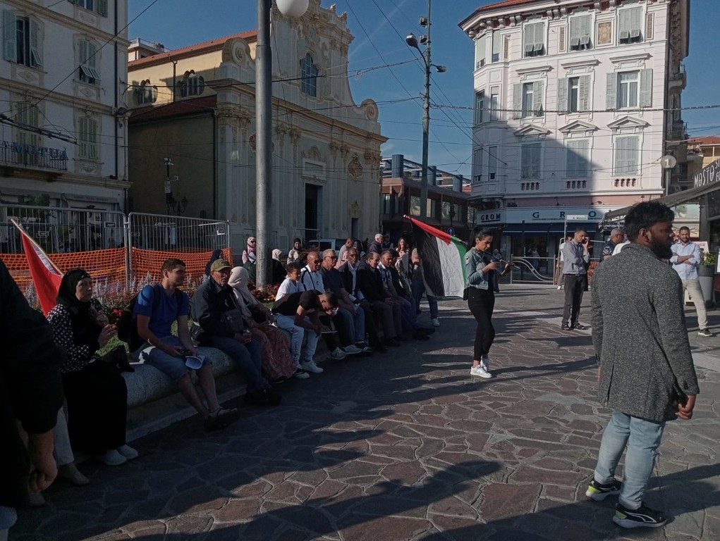 Sul solettone il sit-in organizzato dalla comunità islamica di Imperia