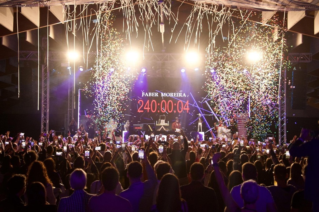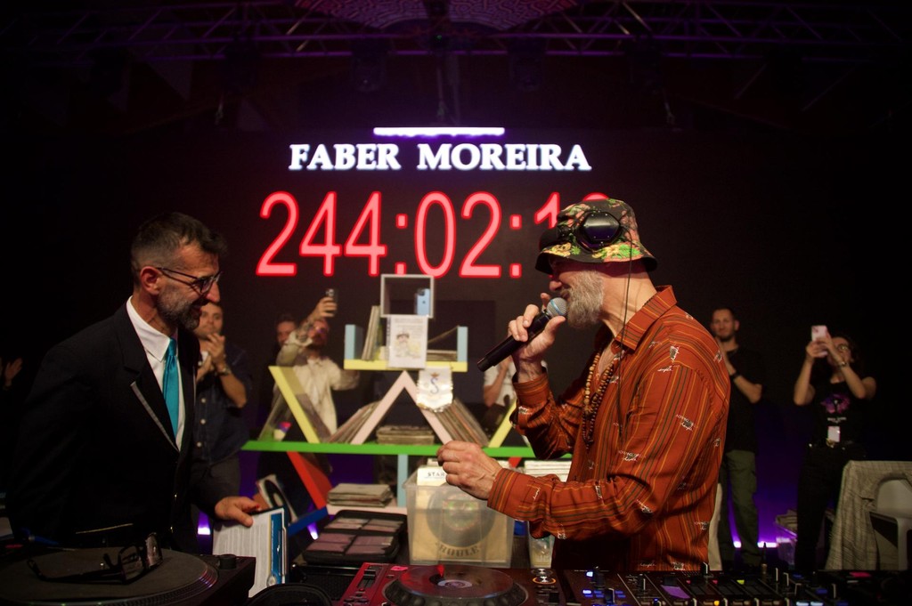 Il primato esistente, detenuto fin dal 2014 dal dj polacco Norberto Loco, che aveva resistito per 200 ore al Temple Bar di Dublino, è crollato alle 5 di venerdì 24 maggio: il dj saluzzese – 59 anni all’anagrafe, la determinazione di un attivista, la concentrazione di un guru e l’energia di un adolescente – è andato oltre. Dopo un altro giorno e mezzo di musica no stop - con la facoltà di fermarsi 5 minuti ogni ora o di accumulare le pause - Faber Moreira è arrivato a 244 ore, battendo ogni scommessa possibile.