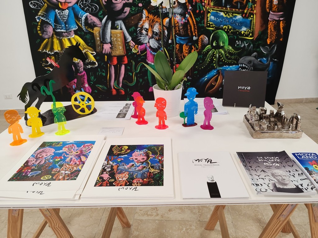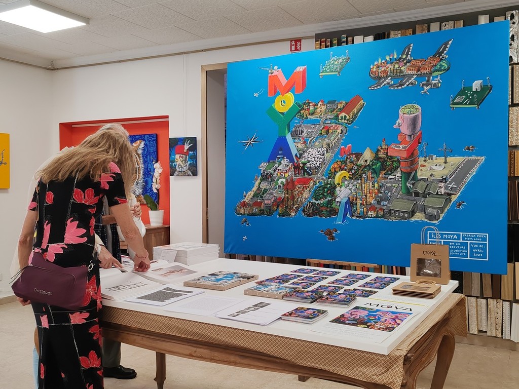 Un artista prolifico che si diletta con pittura, scultura, disegno, ceramica, performance, live painting, installazioni, video e arte digitale e ha realizzato sculture, affreschi e murales per diverse istituzioni, compresa la città di Nizza, per il Carnevale di Nizza e il Festival del Circo del Principato di Monaco. "Faccio opere molto tecniche" - fa sapere l'artista nizzardo Patrick Moya che ha frequentato la prestigiosa scuola d'arte di Nizza Villa Arson e ha al suo attivo molte mostre in tutto il mondo, compresa una memorabile presso La Reggia di Caserta - "La particolarità è che ho fatto un personaggio che è la mia caricatura che è un mix tra me e Pinocchio. In ogni quadro non sono solo ma vi sono altri personaggi, come la pecora Dolly".