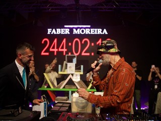 Il primato esistente, detenuto fin dal 2014 dal dj polacco Norberto Loco, che aveva resistito per 200 ore al Temple Bar di Dublino, è crollato alle 5 di venerdì 24 maggio: il dj saluzzese – 59 anni all’anagrafe, la determinazione di un attivista, la concentrazione di un guru e l’energia di un adolescente – è andato oltre. Dopo un altro giorno e mezzo di musica no stop - con la facoltà di fermarsi 5 minuti ogni ora o di accumulare le pause - Faber Moreira è arrivato a 244 ore, battendo ogni scommessa possibile.