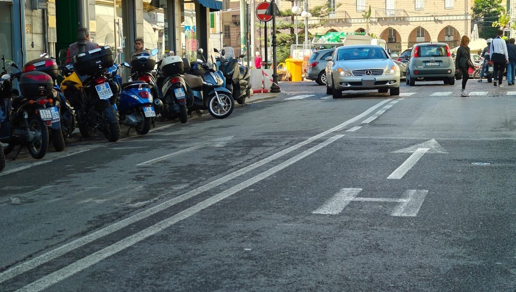 Dal segnale di stop tracciato sull’asfalto della già citata via Pietro Agosti che, a causa di una cancellatura venuta male, si vede ancora chiaramente, passando per le frecce sbiadite che resistono al tempo e al passaggio dei veicoli in corso Garibaldi: la segnaletica delle due zone sanremesi, giusto per fare degli esempi concreti, rischia seriamente di creare disguidi ai tanti turisti che popolano la città matuziana.