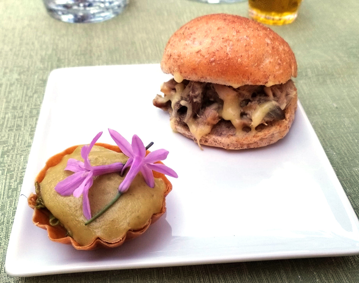 Si è iniziato con una Torta di zucchine impreziosita dai fiori di Tulbaghia insieme al Bun con ragù di coniglio, abbinata a un eccellente Pinot Nero Alta Langa Pas Dosé DOCG Millesimato Garesio.
