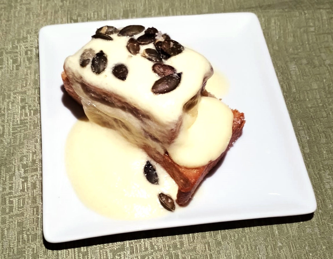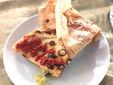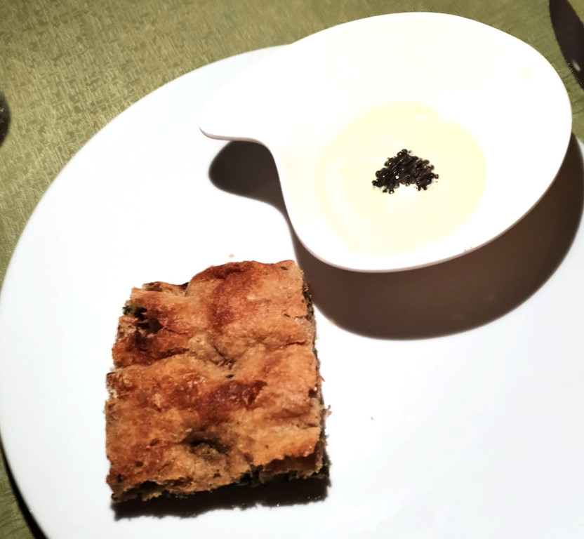 Si è poi passata ad un’altra classica preparazione di Senese, la Pizza alla pala servita con crema di prescinseua, erbe amare, olandese al miso e caviale, abbinata a un Sauvignon Monferrato DOC Bianco Resilio Garesio. Una pizza che ha sorpreso per gli abbinamenti coraggiosi, ma gustosi in grado di esaltare la prescinseua prodotta dall’azienda agricola casearia di Rezzo.