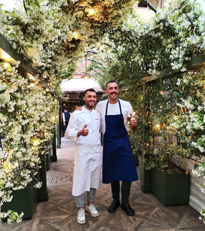 Come dessert la coppia di chef ha proposto una rivisitazione della Tarte Tatin a chiusura di un percorso degustazione caratterizzato da una ricerca costante di materie prime di grande qualità.