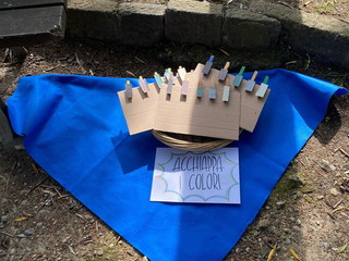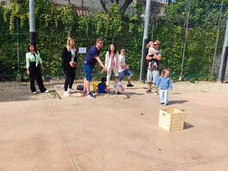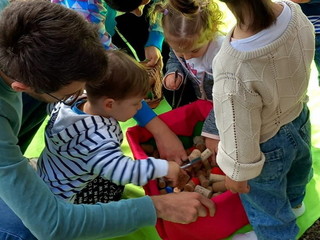 Dopo una bella carica a base di focaccia e succo di frutta, grandi e piccoli si sono divisi in squadre per affrontare la grande sfida in una entusiasmante “Caccia al Tesoro”: parola d’ordine “divertimento”. Diversi gli indizi da trovare e quattro le prove da superare: riconoscere il dettaglio di una foto del proprio figlio, fare canestro con le pigne, travasare con l’aiuto di un paio di pinze i tappi di sughero del proprio colore, trovare nella natura i colori assegnati.
