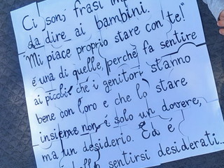 Dopo aver superato tutte le prove, i partecipanti hanno ricevuto in premio un simpatico Puzzle da assemblare, il quale, una volta completato, riportava una frase tratta dal libro “Giorno per Giorno” che porta avanti la programmazione educativa di quest’anno al Nido. Terminata la Caccia al Tesoro, i bambini hanno continuato a giocare liberamente attrezzati di gessetti colorati, palloni, bolle di sapone fino all’ora di pranzo, per il quale si è organizzato un delizioso pic-nic nella bellissima oasi verde, circondati da suggestivi ulivi secolari.