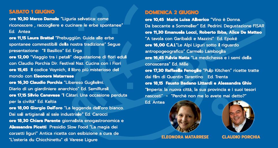 L’evento letterario da sempre rappresenta una buona opportunità per Imperia e gli imperiesi per scoprire le ultime novità letterarie e partecipare a dibattiti e incontri con gli autori. Immancabile la partecipazione delle case editrici e l’esposizione di migliaia di libri. Oltre alle presentazioni dei libri, la Fiera del Libro di Imperia offre un ricco programma di eventi, tra cui dibattiti, incontri con gli autori, caffè letterari e presentazioni (scaricare la brochure a questo link). Per leggere il programma di oggi cliccare QUI, per quello di domani QUI e per leggere le presentazioni dell’Oasi del Gusto cliccare QUI.