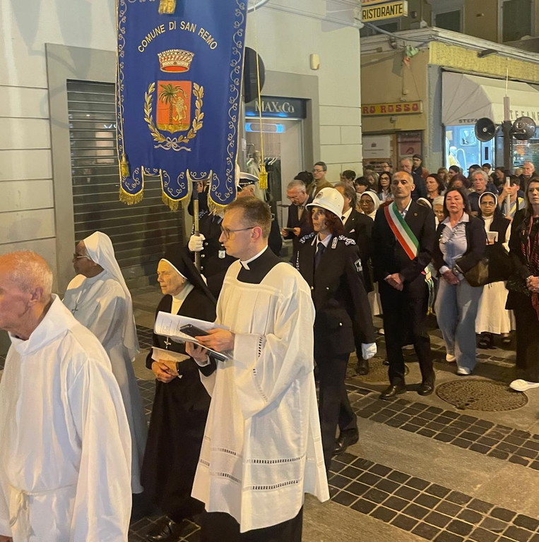 Tra i portantini Massimiliano Moroni, Antonio Bissolotti, Luca Lombardi e Mario Rinaldo. Presente anche il corpo bandistico di Taggia. Molti sanremesi, giovedì scorso, anche alla Processione del Corpus Domini.