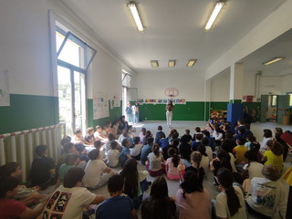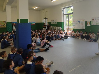 Tanto entusiasmo e un’emozione vera, autentica, pulita. L'entusiasmo di cento bambini che hanno accolto con un applauso spontaneo Amanda Embriaco quando è entrata nella palestra della scuola Rubino.