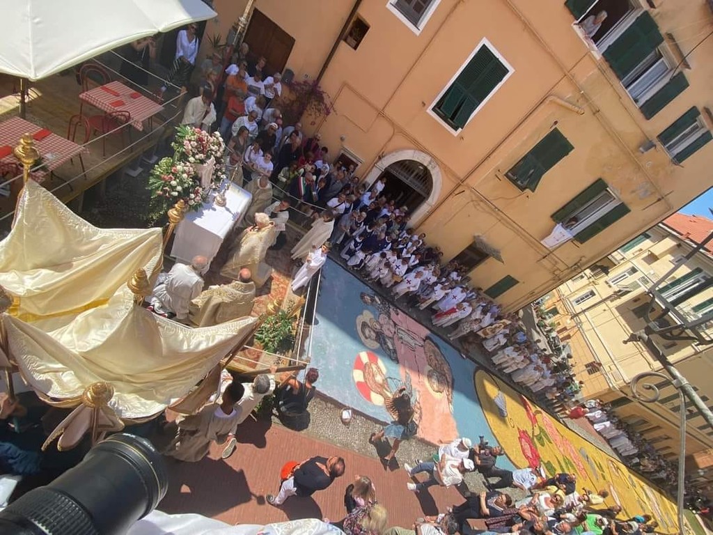 Imperia ospiterà l’Infiorata di via Carducci, un’iniziativa molto attesa in città, con una distesa di migliaia di petali di fiori, sia freschi che secchi, ma anche rami, foglie e fondi di caffè che richiede almeno tre mesi di lavoro. Per tutte le giornate di sabato e domenica (e per tutta la notte tra sabato e domenica) decine di volontari prepareranno i cosiddetti ‘quadri’, il tappeto multicolore di fiori e petali sul quale, come tradizione, non può passare nessuno se non dopo il transito della processione. Quadri che saranno visibili poi fino a domenica sera.