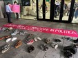 Nel giorno della sfiducia a Toti e alla sua giunta, fuori dalla sede del consiglio regionale monta ancora la protesta. Uno striscione che recita “Contro mafia e corruzione in politica”, 74 paia di scarpe (uno per ogni migliaio di euro che Spinelli ha dato a Toti, così fanno sapere gli organizzatori) e un cartello: “La corruzione fa sparire le persone comuni”.