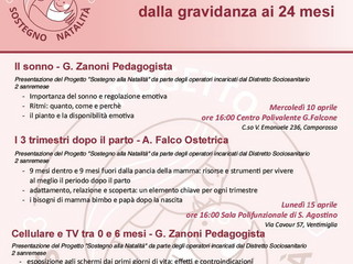 “L’invito è per tutti i genitori, sia coloro che lo sono appena diventati sia coloro che lo sono già magari da qualche anno: sarà un’ottima occasione per confrontarsi su temi importanti per la crescita e lo sviluppo dei bambini” è il commento dell’Assessore Sferrazza. L’iniziativa fa parte del progetto 'Sostegno alla natalità' a cura di ASL1, dei Distretti Sociosanitari 1, 2 e 3 del Centro di Promozione Famiglia.