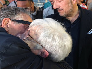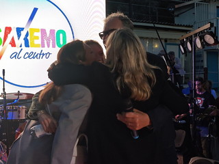 Alla fine non è mancato l'abbraccio della moglie e delle figlie sul palco.