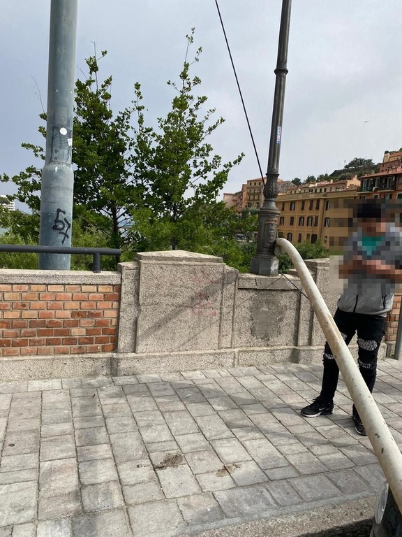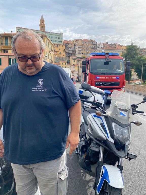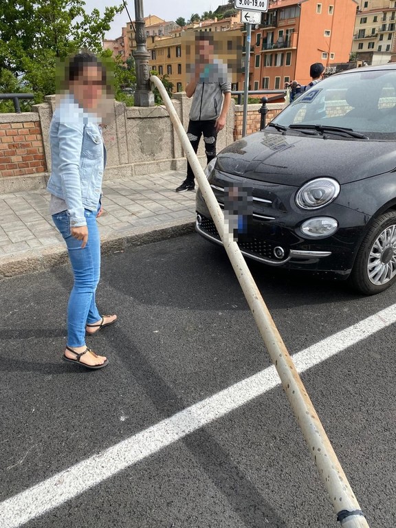 Ventimiglia, forte vento: palo cade e danneggia auto sul ponte Doria (Foto)