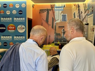 Nel lungo pomeriggio elettorale Alessandro Mager ha fatto capolino poco prima delle 15 al suo point di via Roma, ma ha preferito non rilasciare dichiarazioni in attesa dei primi dati ufficiali.