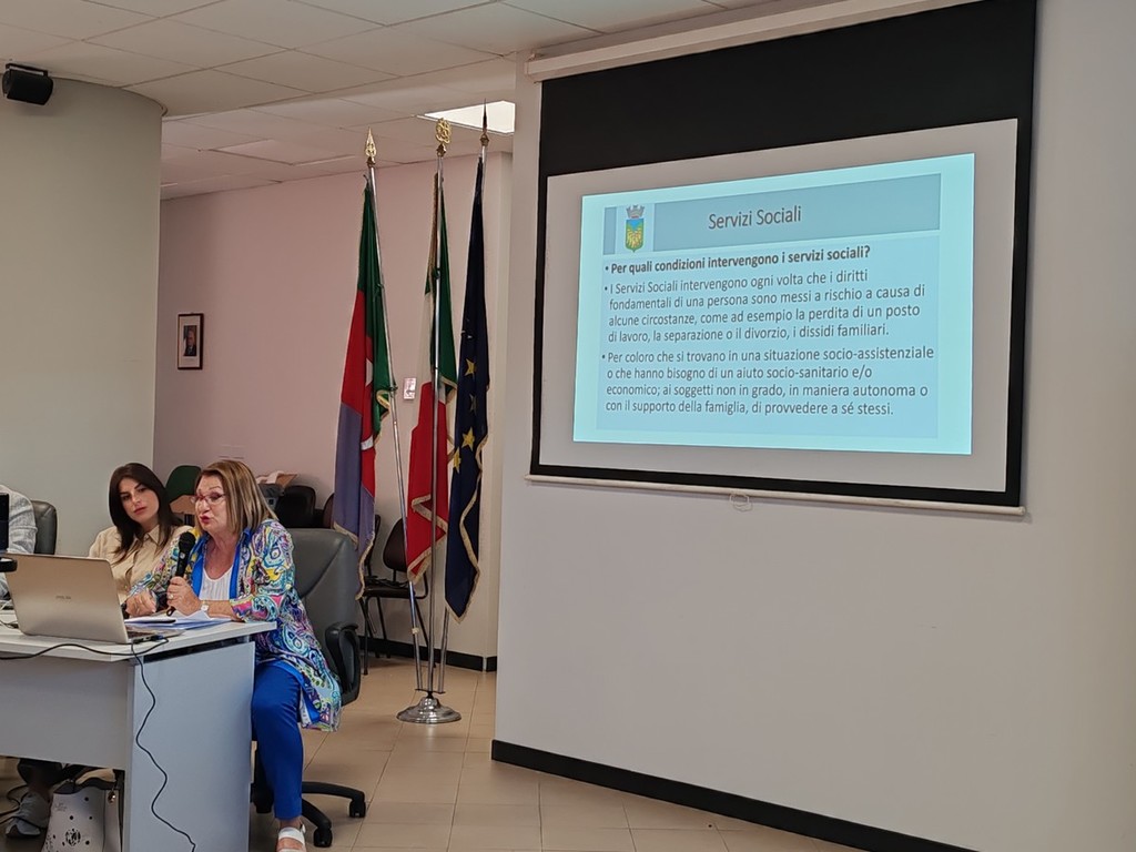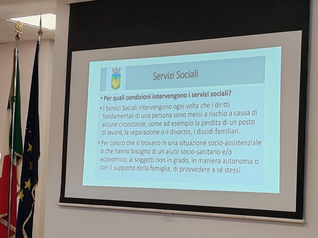 E' stato spiegato al pubblico in sala cosa sono i servizi sociali e a chi si rivolgono: anziani, disabili, tossicodipendenti, pazienti psichiatrici e minori. "I servizi di assistenza sono erogati e amministrati dai comuni, secondo la Costituzione italiana" - fa sapere il vicesindaco e assessore alle Politiche sociali Marilena Piardi - "I servizi sociali operano sulla base di una normativa nazionale, regionale e locale con l'obiettivo di promuovere la salute, il benessere e l'autonomia dei cittadini. Per servizi sociali si intendono gli strumenti per garantire assistenza a persone in difficoltà in un sistema di Stato sociale. Nei servizi sciali sono comprese tutte le attività e gli interventi atti ad attenuare o superare lo stato di bisogno fisico, economico e di emarginazione sociale, quindi, rappresentano un presidio sul territorio per garantire i diritti e la giustizia sociale, che si concretizza in un sostegno pratico ai cittadini e alle comunità familiari. Dopo la pandemia si sono esasperate le situazioni di povertà, emarginazione e violenza domestica. I servizi sociali intervengono, perciò, ogni volta che i diritti fondamentali di una persona sono messi a rischio a causa di alcune circostanze, come ad esempio, la perdita di un posto di lavoro, la separazione o il divorzio, i dissidi familiari, oppure per coloro che si trovano in una situazione socio-assistenziale o che hanno bisogno di un aiuto socio-sanitario e/o economico, o per i soggetti non in grado, in maniera autonoma o con il supporto della famiglia, di provvedere a sé stessi. I servizi sociali si rivolgono ai minori e alle famiglie; ai disabili; agli anziani; ai migranti; ai tossicodipendenti e ai pazienti psichiatrici".