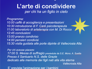 Chi avesse piacere potrà anche partecipare alle 17 alla S. Messa in suffragio e prenotare una stellina con il nome del proprio figlio da mettere nel santuario di N.S. delle Grazie dedicato ai figli nati alla Vita Eterna. E’ prevista l’animazione dei fratellini.