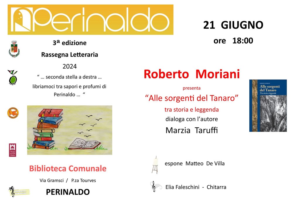 Moriani, per l'occasione, presenterà "Alle sorgenti del Tanaro. Tra storia e leggenda". Dialogherà con l'autore Marzia Taruffi. L'incontro sarà animato dall'esposizione di Matteo De Villa e dall'esibizione alla chitarra di Elia Faleschini.