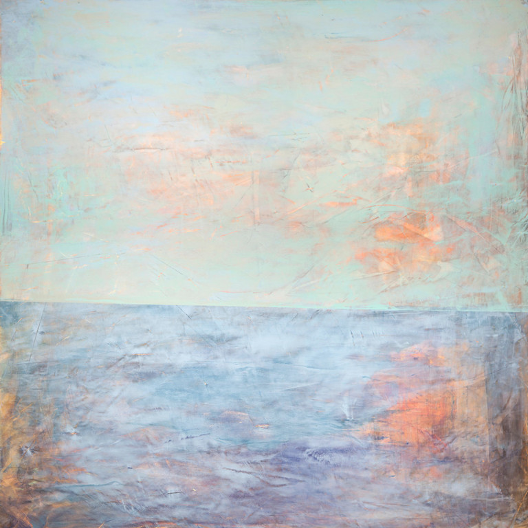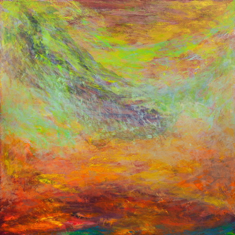 Nelle creazioni di Corrado, lo slancio verso l'infinito si esalta nelle nuances tra cui il celeste che richiama il cielo e il mare, degradando verso tonalità più delicate o più decise, in cui l'oro brillante spesso domina la tela. La creatività di questo artista ricarica il fruitore con le sue cromie che vibrano all'unisono con il cosmo ed ispirano Rebirth - Resurrection.
