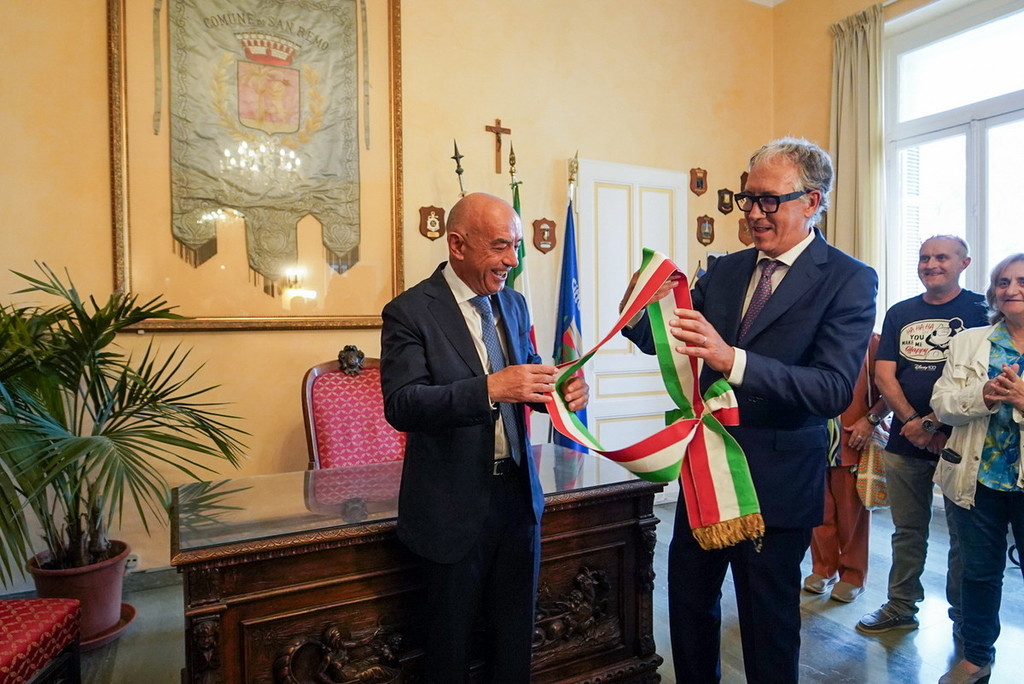 Dopo i festeggiamenti e dopo la proclamazione in tribunale, per Alessandro Mager è arrivato il momento di prendere posto in Comune. Il neo sindaco di Sanremo è entrato per la prima volta a Palazzo Bellevue con la fascia tricolore al petto, diretto verso l’ufficio che per 10 anni ha ospitato Alberto Biancheri.