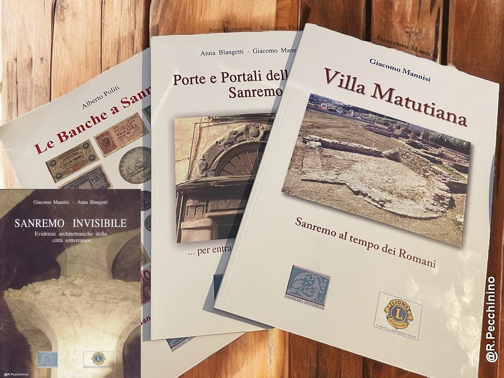 L’ultima fatica del dott. Giacomo Mannisi “Archeologia a Sanremo”, è un libro che va ad arricchire quel patrimonio culturale di Sanremo, iniziata già da alcuni anni in collaborazione con il Lions Club Sanremo Host, sponsorizzando questa attività culturale con la pubblicazione di quattro volumi sulla storia cittadina: nel 2017 sotto la presidenza di Maurizio Cravaschino “Sanremo invisibile: evidenze architettoniche della città sotterranea” di Giacomo Mannisi e Anna Blangetti; nel 2018 sotto la presidenza di Emanuele Ghiringhelli “Porte e Portali della Pigna-Sanremo: per entrare nella storia della nostra città” di Giacomo Mannisi e Anna Blangetti; nel 2019 sotto la presidenza di Vincenzo Benza “Le Banche a Sanremo: Banchieri e Banche nella città di Sanremo” di Alberto Politi; nel 2020 sotto la presidenza di Roberto Pecchinino “Villa Matutiana: Sanremo al tempo dei Romani” di Giacomo Mannisi.