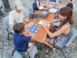 Ecco ieri sera piazza San Siro a Sanremo si è così trasformata perché, per la prima volta durante le varie edizioni dei festeggiamenti parrocchiali, si è pensato di organizzare una serata di gioco, una serata tranquilla come quelle in famiglia. I tavoli si sono riempiti di persone, coppie o gruppetti che, dopo aver scelto tra l’ampia gamma messa a disposizione dagli organizzatori, hanno cominciato a divertirsi con passatempi vecchi e consolidati o lanciandosi alla scoperta di nuove tipologie. I gruppi si sono formati anche spontaneamente tra "sconosciuti" a testimoniare che il divertimento si può condividere e magari aiuta a far nascere delle amicizie.