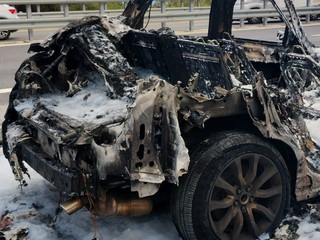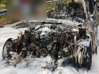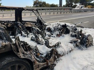 Auto prende fuoco sull'autostrada poco fuori da una galleria: intervento dei Vigili del Fuoco (Foto)