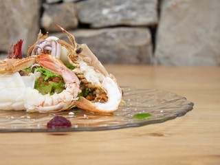 Il menu, prevalentemente a base di pesce, propone una selezione di piatti che celebrano i sapori autentici del mare, utilizzando ingredienti freschi e di alta qualità, rigorosamente selezionati dai migliori fornitori.