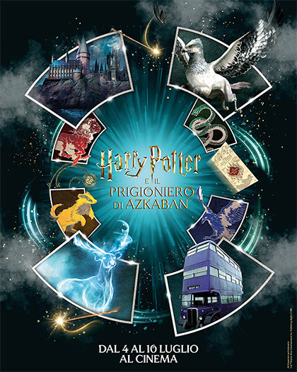 - HARRY POTTER E IL PRIGIONIERO DI AZKABAN – 20° ANNIVERSARIO – ore 19.00 - 21.30 – di Alfonso Cuarón - con Daniel Radcliffe, Rupert Grint, Emma Watson, Gary Oldman, Alan Rickman - Fantastico - "Harry Potter ha tredici anni e deve trascorrere ancora una volta le vacanze estive con i terribili zii Dursley, i suoi unici parenti, che hanno un atteggiamento davvero medioevale nei confronti della magia e vivono nel terrore che qualcuno scopra che il nipote frequenta la Scuola di Magia e Stregoneria di Hogwarts. Tutto fila liscio fino all'arrivo di zia Marge, la prepotente sorella di zio Vernon, che maltratta talmente tanto Harry da spingerlo ‘involontariamente’ a farla gonfiare come un mostruoso pallone che si libra nell'aria. Temendo di essere punito dagli zii (e da Hogwarts, perchè il Ministero della Magia proibisce severamente agli studenti di usare le arti magiche nel mondo dei Babbani), Harry fugge nella notte...”