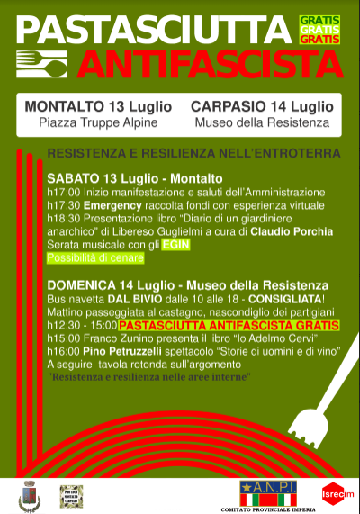 La "Pastasciutta antifascista – Resistenza e resilienza nell'entroterra" torna a Montalto Carpasio per un fine settimana all'insegna della memoria e della solidarietà, ispirata dall'azione della famiglia Cervi nel 1943. L'evento, organizzato in collaborazione con il Comune di Montalto Carpasio, onora il coraggio e il sacrificio dei partigiani. Anche quest'anno, EMERGENCY sarà presente con un banchetto informativo e un visore 3D per portare virtualmente a bordo della nave "LIFE SUPPORT", che ha salvato 1.678 persone nel Mar Mediterraneo dal dicembre 2022.