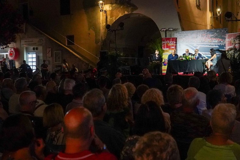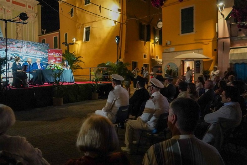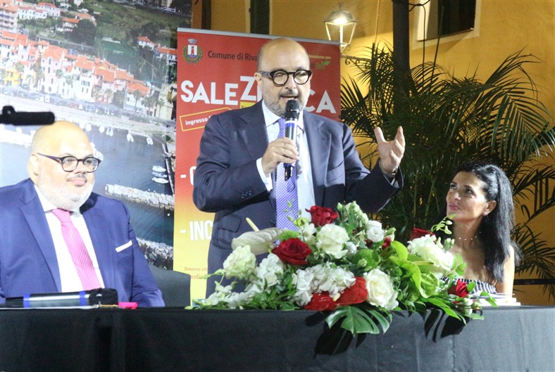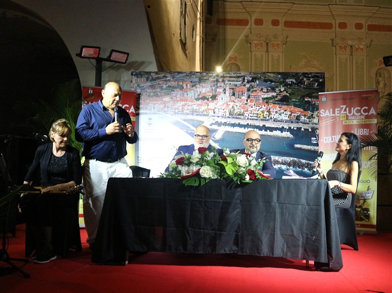 La rassegna "Sale in Zucca" promossa dal Comune di Riva Ligure ha avuto un inizio spettacolare con il primo evento che ha visto la partecipazione di oltre 300 persone. Il ministro della cultura Gennaro Sangiuliano insieme a Cristina Carbotti, Marisa Fagnani, Renata Cantamessa e Claudio Porchia sono stati i protagonisti di una serata ricca di emozioni e applausi.