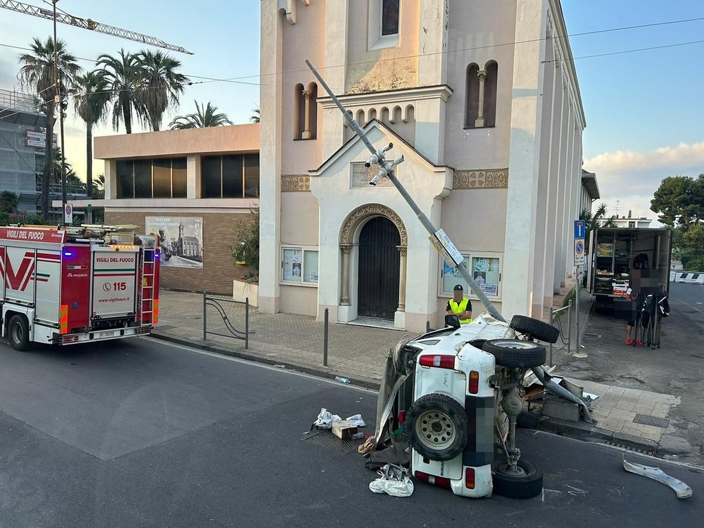 Sanremo, si ribalta con l'auto e si schianta contro un palo della videosorveglianza (Foto)