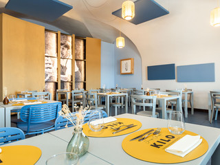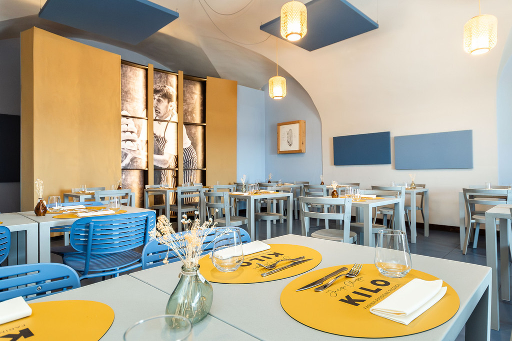 Pareti di allegri colori pastello, dove dominano come prima il giallo e il celeste; più coperti e più spazio tra un tavolo e l'altro, una nuova mise en place più curata ed elaborata, per creare un'esperienza sempre migliore per la clientela.
