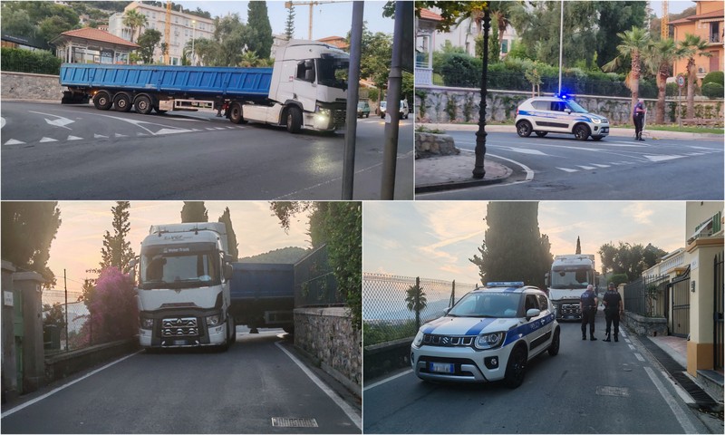 Camion incastrato a Bordighera, liberato dai vigili del fuoco: riaperta via Coggiola (Foto e video)