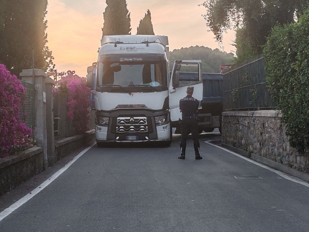 Fondamentale l'intervento dell'autogru proveniente da Genova. Sul posto anche la polizia locale
