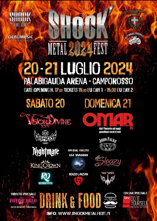 "Che dire di più se non che il più grande festival metal della zona è tornato anche quest'anno" - dicono gli organizzatori - "I ragazzi della shock Events con tanta speranza di continuare a fare crescere l'evento sperano in una grande affluenza affinché il rock metal possa continuare a crescere nella nostra provincia e perché possa diventare uno degli eventi importanti del panorama musicale nazionale. Food and beverage by Baffo. Per informazioni si può consultare www.shockmetalfest.it oppure i social: Instagram shockmetalfest e Facebook shockmetalfest".