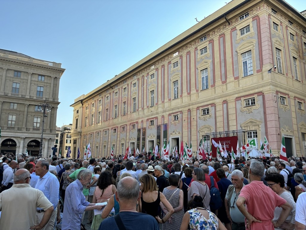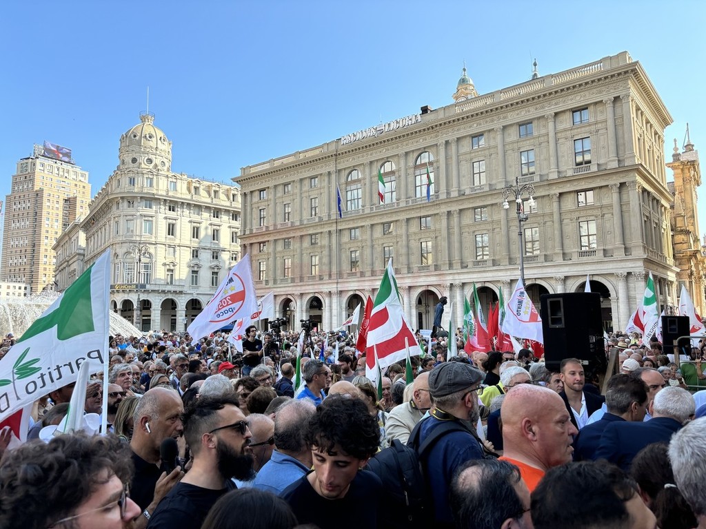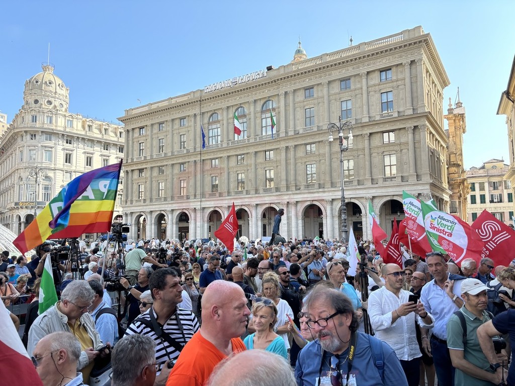 Sul palco di piazza De Ferrari sono saliti i leader del centrosinistra nazionale, da Elly Schlein (PD) a Giuseppe Conte (M5S) passando per Nicola Fratoianni e Angelo Bonelli (AVS). In piazza anche una delegazione di Azione oltre a ‘Linea Condivisa’ e ‘Lista Sansa’. Presente anche Andrea Orlando, principale indiziato per il ruolo di candidato presidente del centrosinistra alle prossime regionali.