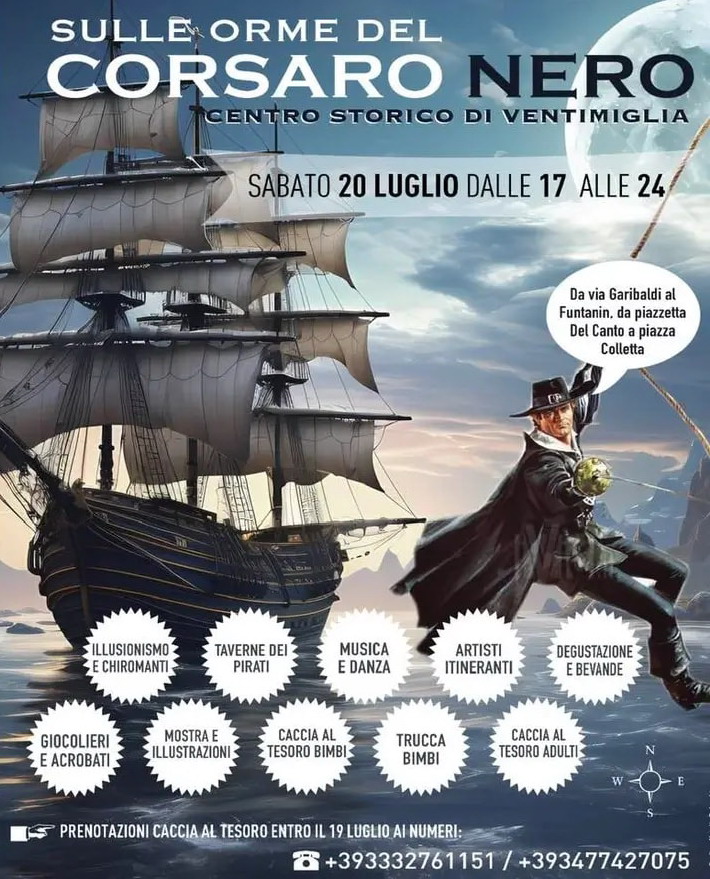 17.00-24.00. ‘Sulle Orme del Corsaro Nero’: ambientazioni, spettacoli ed eventi a tema per famiglie a cura dell’Associazione ‘Le Ragazze di Wilma e...’. Centro storico (locandina)