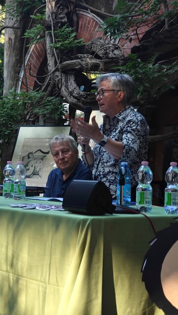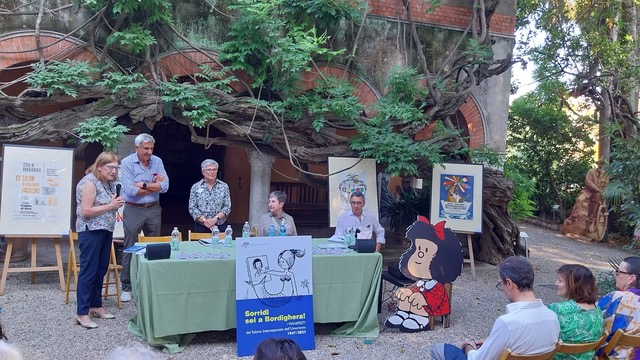 “Complice l'inaspettata presenza di alcuni protagonisti della storia dell'umorismo – spiegano gli organizzatori -, tra il pubblico in forma di cut-out, Mafalda, Cocco Bill, il clown di Mordillo, la Linea di Cavandoli e i fidanzati di Peynet, si è conversato piacevolmente sui temi dell’umorismo. Tra una Jacaranda sudamericana e i magnifici ficus macrophylla australiani, Lucca Comics, ospite gradito, ha ritrovato le proprie radici. Come ha ricordato Dario Dino-Guida la famosa manifestazione nasce infatti a Bordighera nel 1965 per la scintilla creativa di Umberto Eco e Claudio Bertieri.