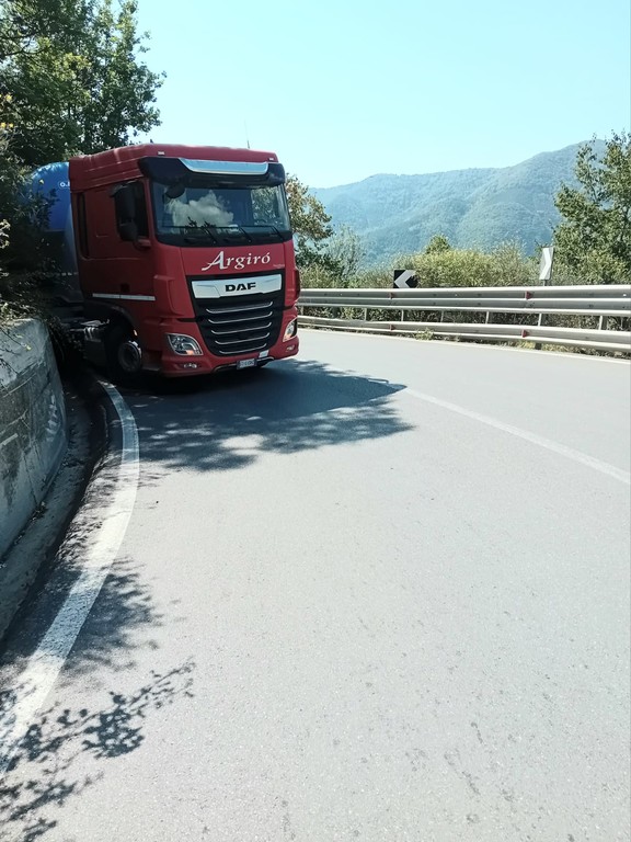 Ennesimo tir incastrato sulle strade dell’entroterra e fioccano le polemiche. Un mezzo pesante, infatti, nella mattinata di oggi, è rimasto incastrato poco sopra l'abitato di Pornassio.