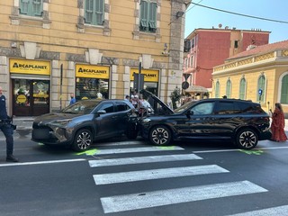 Sanremo: scontro tra due auto in via Roma, mobilitazione di soccorsi e traffico in tilt (Foto)