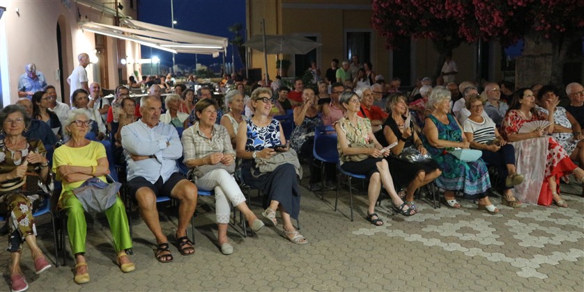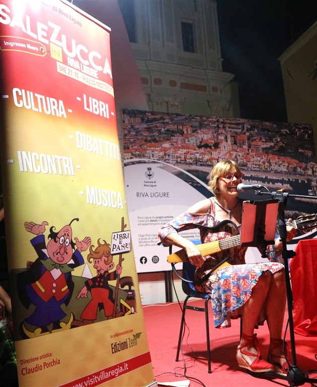 Un enorme successo ha caratterizzato il terzo appuntamento di "Sale in Zucca", dove il pubblico ha tributato applausi scroscianti a Gino Rapa e Marisa Fagnani. In questa particolare occasione, la lingua italiana, strumento della nostra cultura e identità, ha occupato il fulcro dell'incontro con lo scrittore di Albenga, accompagnato dalle suggestive sonorità musicali di Marisa Fagnani. La piazza era stracolma per l’incontro presentato con simpatia e professionalità da Claudio Porchia e Renata Cantamessa.