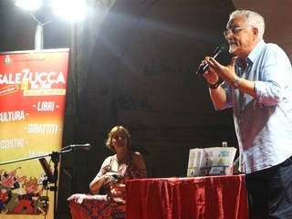 Un enorme successo ha caratterizzato il terzo appuntamento di "Sale in Zucca", dove il pubblico ha tributato applausi scroscianti a Gino Rapa e Marisa Fagnani. In questa particolare occasione, la lingua italiana, strumento della nostra cultura e identità, ha occupato il fulcro dell'incontro con lo scrittore di Albenga, accompagnato dalle suggestive sonorità musicali di Marisa Fagnani. La piazza era stracolma per l’incontro presentato con simpatia e professionalità da Claudio Porchia e Renata Cantamessa.