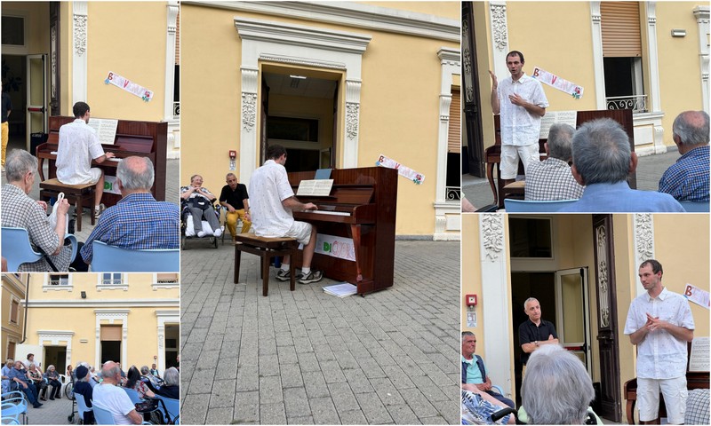 Con un programma che ha spaziato dalla musica classica al jazz, l'approccio, il tocco, la grazia e la sensibilità del giovane maestro hanno messo in circolo una brezza soave che ha commosso tutti: ospiti della Rsa, parenti, amici e turisti che hanno assistito a qualcosa di diverso dove la musica ha 'portato letteralmente per mano' con l'intento di far riaffiorare ricordi che facessero confrontare, tra loro, le persone del pubblico.