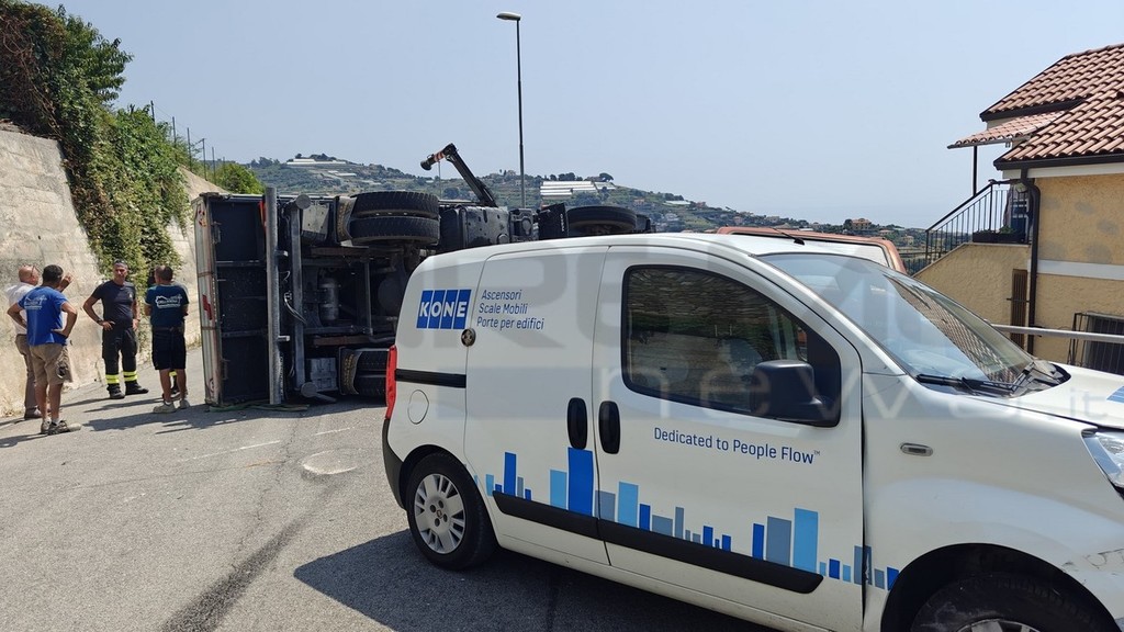 Sanremo: camion 'aggancia' un'auto con gli stabilizzatori e ne distrugge altre due in via Calvino (Foto)