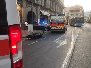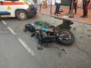 Ventimiglia: scontro tra due moto stasera in via Cavour, i due centauri in ospedale a Bordighera (Foto)